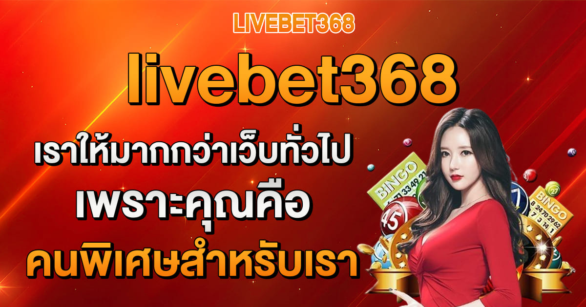 LIVEBET368 เป็นเว็บเดิมพันออนไลน์ครบวงจรที่เปิดให้บริการทั้งคาสิโนสด สล็อต และแทงบอลสด โดยมีระบบ LIVEBET368 เว็บตรง และ LIVEBET368 ไม่ผ่านเอเย่นต์ เพื่อให้สมาชิกมั่นใจในความปลอดภัยและความโปร่งใสในการเล่น